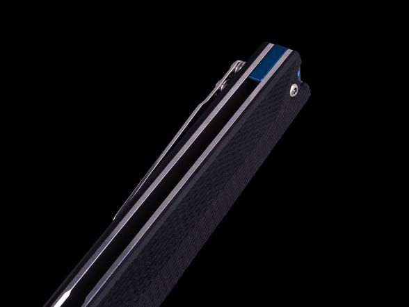 Форма рукояти простая, но эргономичная - она удобно ложится в ладонь и обеспечивает уверенное удержание при любых задачах. За счёт G10-накладок нож не скользит, даже если руки влажные или в перчатках. Конструкция дополнена стальной клипсой для удобного ношения в кармане и отверстием под темляк, что повышает универсальность и контроль при использовании.