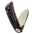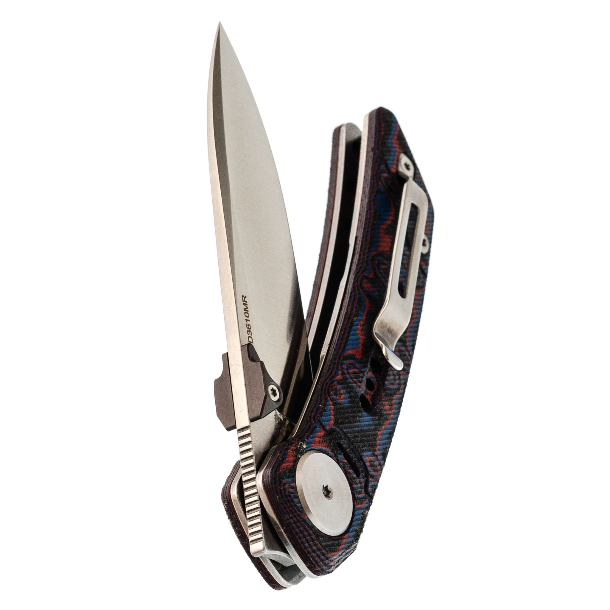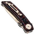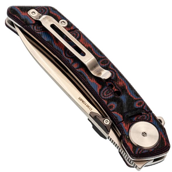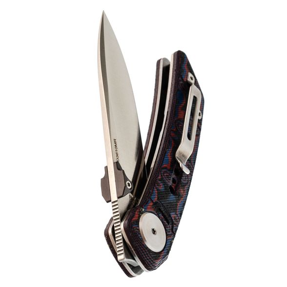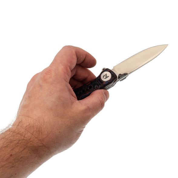 Клинок открывается быстро и плавно: на выбор - флиппер или удобные двухсторонние шпеньки. Drop-Point профиль с прямыми спусками обеспечивает отличную управляемость и рез. Сталь легко обслуживается и долго держит остроту.