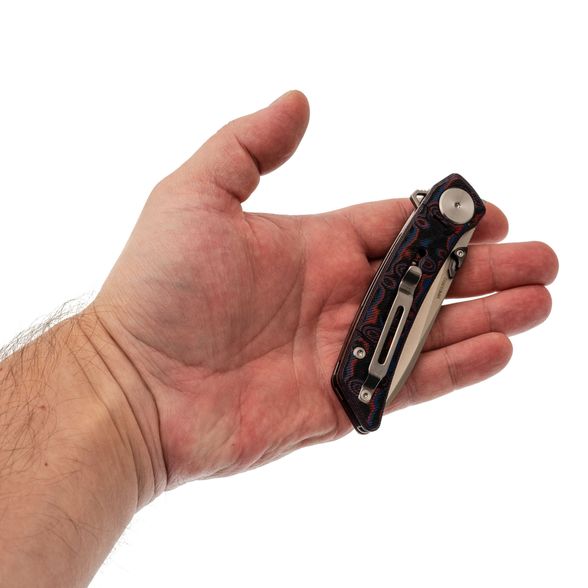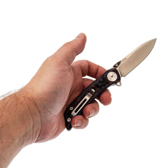 Нож удобно лежит в руке благодаря гладким формам и сбалансированному весу. Liner-Lock надёжен, а карманная клипса и темлячное отверстие добавляют гибкости в ежедневном ношении.