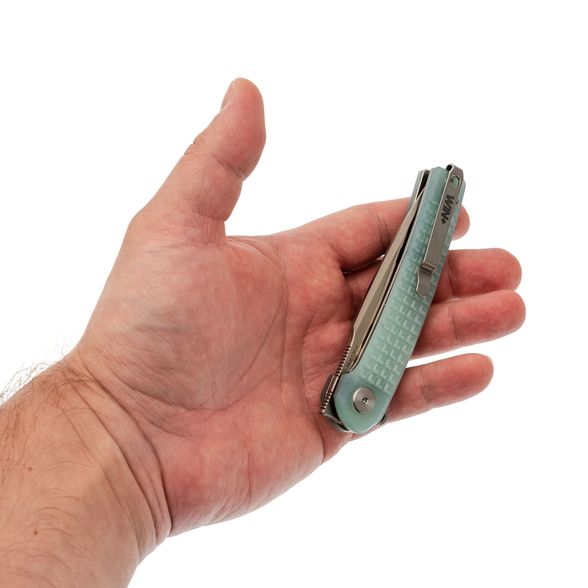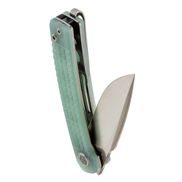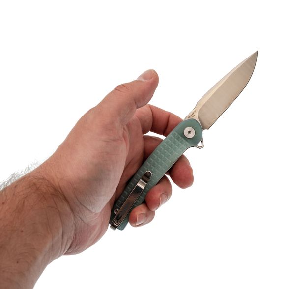 Рукоять повторяет естественную форму ладони, хорошо ложится в руку и не скользит. За счёт фрезеровки Frag Pattern создаётся дополнительная цепкость, особенно в условиях влаги. Присутствуют темлячное отверстие и переставляемая клипса - удобно для переноски в любом кармане.