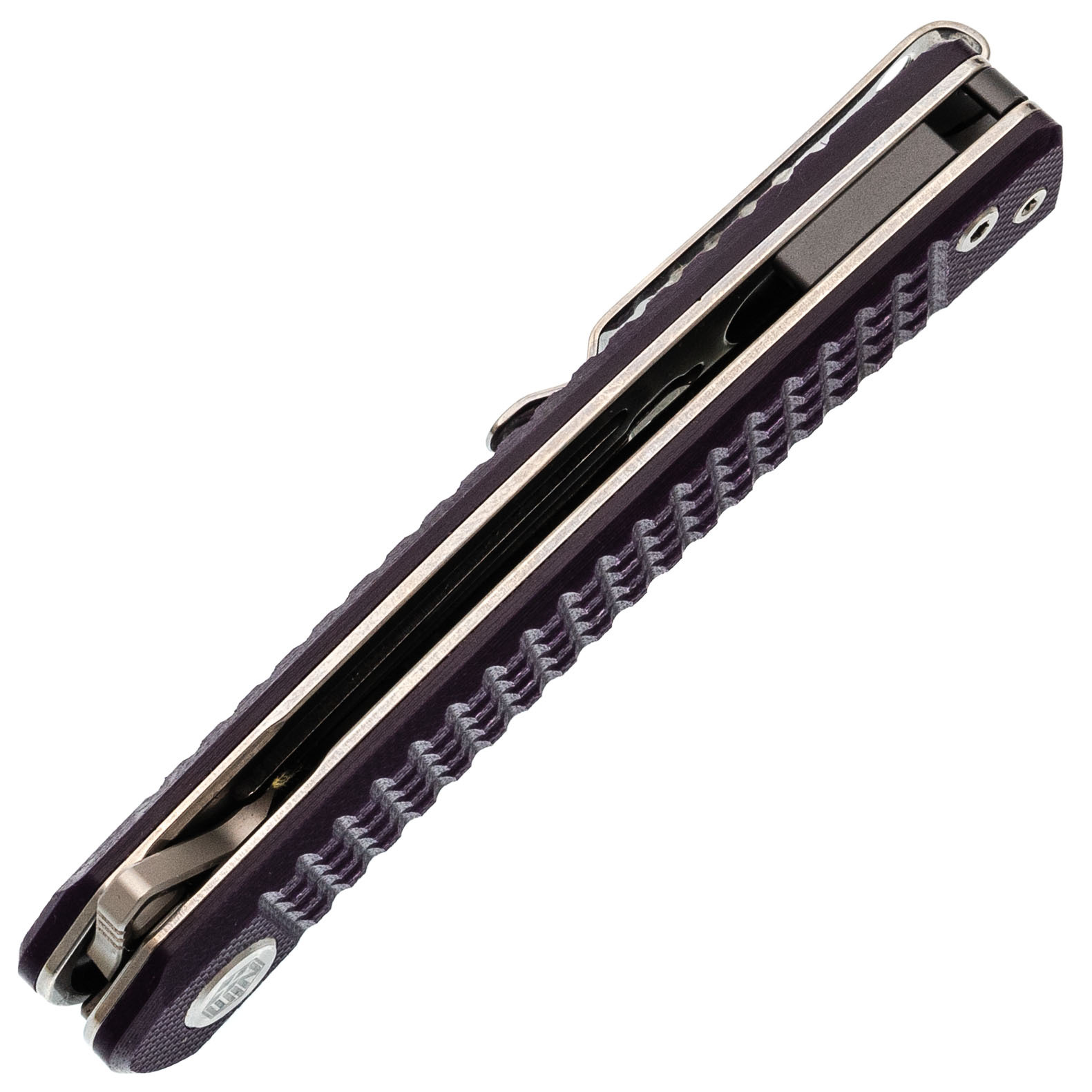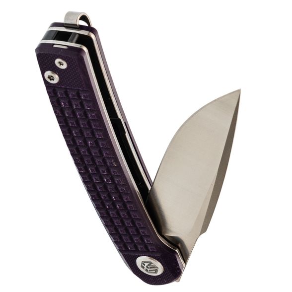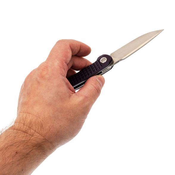 Фиолетовые накладки из G10. Яркий, но не кричащий цвет и фактурная поверхность с классическим Frag Pattern - для уверенного хвата даже в перчатках или влажной ладони.