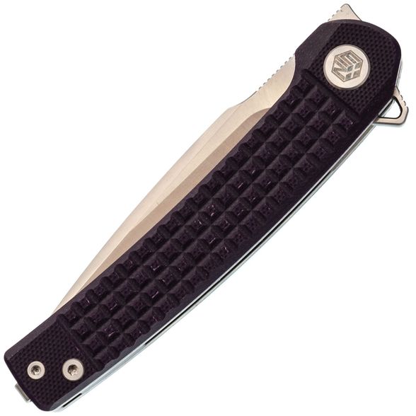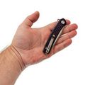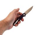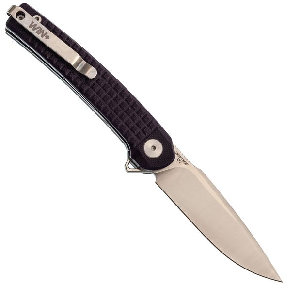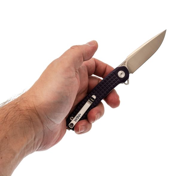 Рукоять имеет выраженный изгиб под анатомию ладони, что создаёт удобный хват. Фрезеровка Frag Pattern добавляет цепкости, предотвращая проскальзывание. Переставляемая клипса и темлячное отверстие обеспечивают удобство при ношении.