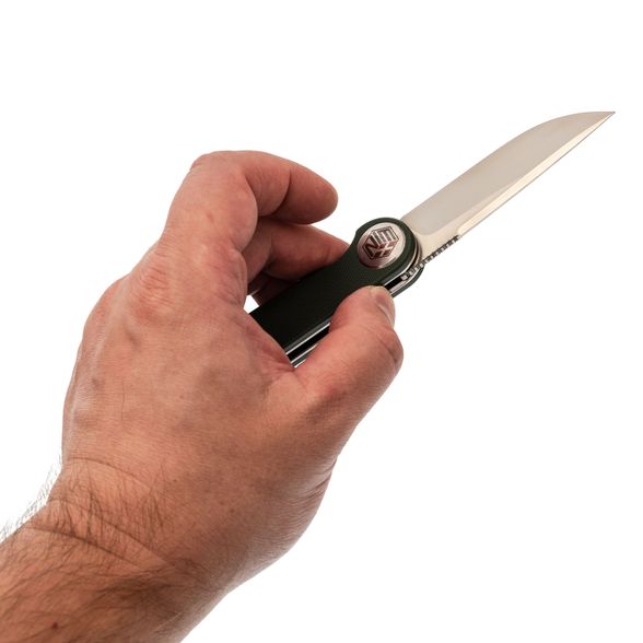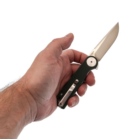 Рукоять имеет анатомическую форму, удобно ложится в руку и не выскальзывает. G10 обеспечивает надёжное сцепление с ладонью даже во влажной среде. Клипса легко регулируется, а отверстие под темляк позволяет закрепить нож на снаряжении или рюкзаке.