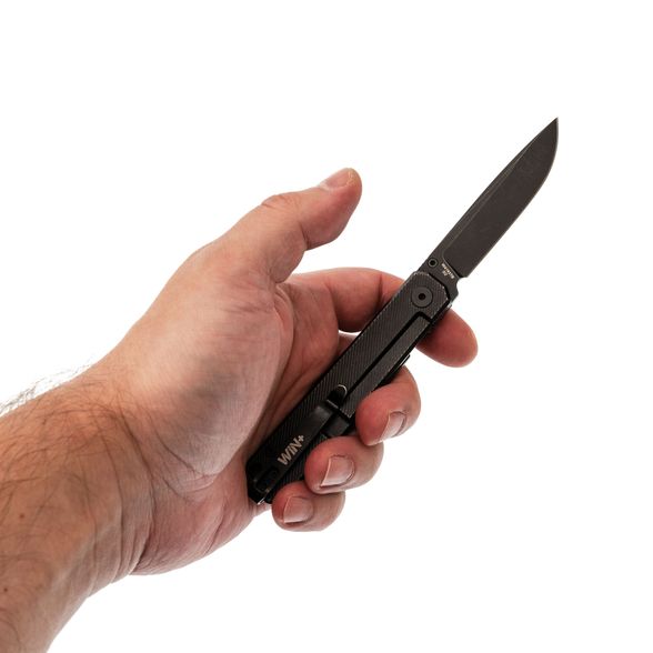 Клинок среднего размера - тот самый баланс между компактностью в кармане и комфортом в работе. Прямые высокие спуски дают лёгкий, скользящий рез по продуктам и упаковкам, а управляемая геометрия помогает точнее вести линию. Открывание со шпенька - быстро и интуитивно: вышел, поддел упаковку, закрыл одной рукой и продолжил дела.