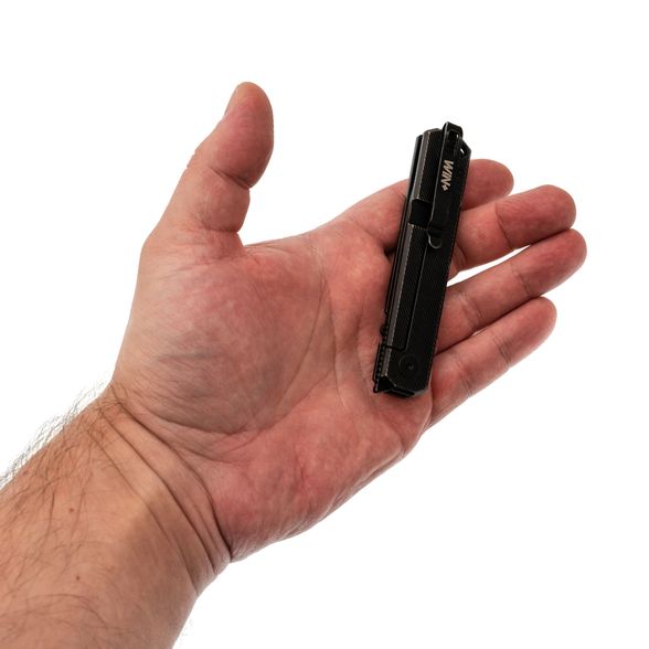 Mirage от Dr.Tech - это про спокойный, умный минимализм. Внешне он строгий и сдержанный, но если присмотреться, видно множество мелочей, сделанных ради удобства каждый день: уверенный старт со шпенька, аккуратные фаски, цепкая текстура, надёжный замок. Модель создана для повседневных задач - компактная, управляемая и не теряющаяся в кармане.