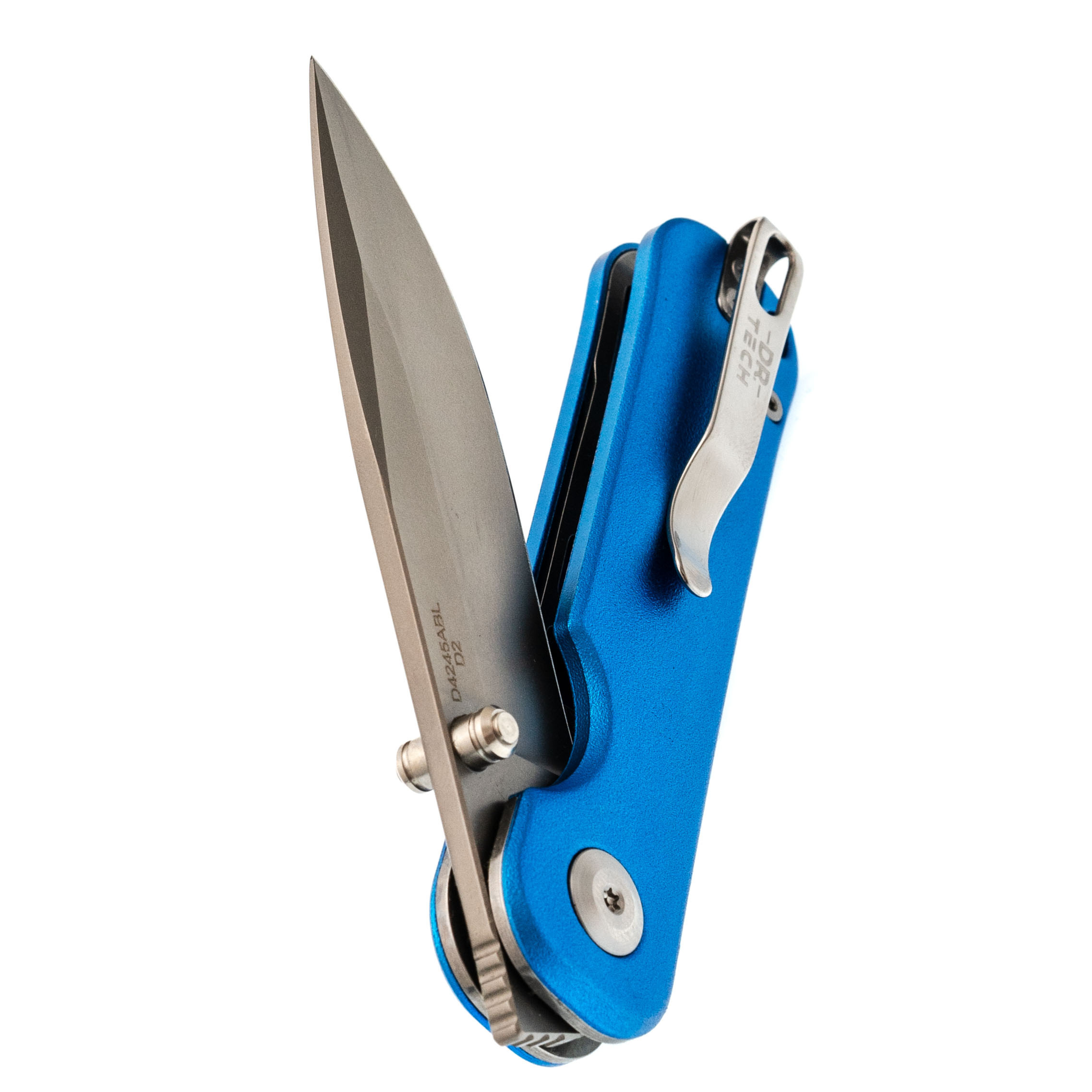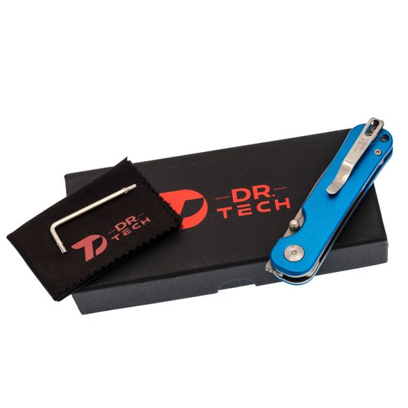 Dr.Tech Zefir - складной помощник для тех, кто ценит спокойный рабочий характер ножа без лишнего пафоса. Название отсылает и к легкому ветру, и к воздушному десерту, а по сути перед нами утилитарный городской трудяга: средней длины клинок, понятная конструкция, ярко-синяя рукоять, которую легко найти глазами среди вещей. Zefir создан, чтобы каждый день уверенно выполнять свои задачи - от кухни на выезде до мелкого ремонта и распаковки посылок.
