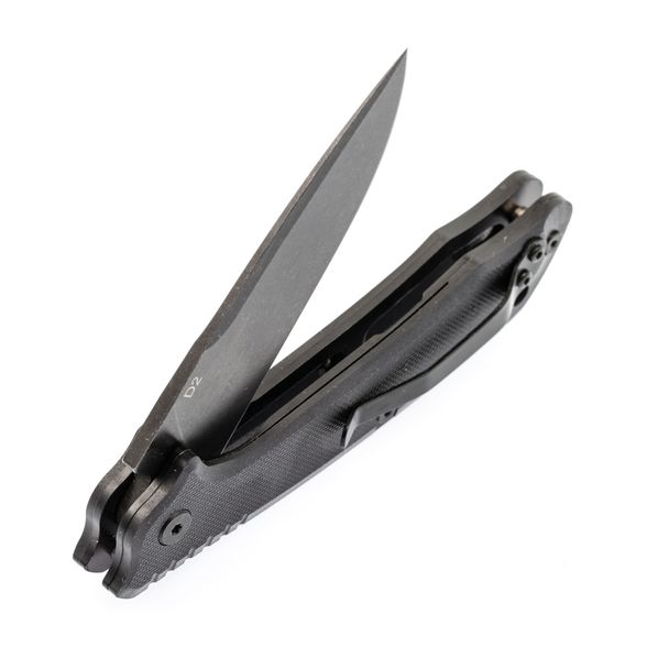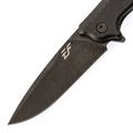СКЛАДНОЙ НОЖ EAFENGROW EF223 BLACK, СТАЛЬ D2, РУКОЯТЬ G10 вполне может составить конкуренцию любому рабочему ножу «мора», который валяется в вашем ящике с инструментами. Следующий раз, когда надумаете покупать нож для выполнения грязной силовой работы, вспомните об этом малыше. Здесь используются материалы, которые редко можно приобрести за такую цену. Клинок из инструментальной стали обладает жесткой кристаллической структурой и отлично сохраняет остроту. Режущая кромка имеет оптимальный баланс между остротой и упругостью, поэтому при контакте с твердыми предметами она не выкрашивается, а лишь слегка заминается. Впрочем, такой недостаток легко выправляется с помощью любой карманной точилки или камня.