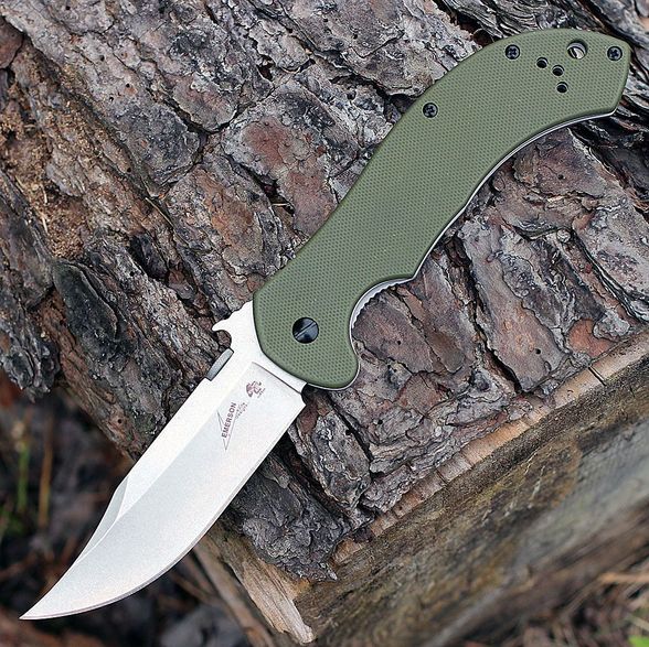 Складной нож Emerson Design CQC-10K. , Stonewashed Bowie Blade, Green G-10 and Steel Handle