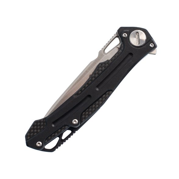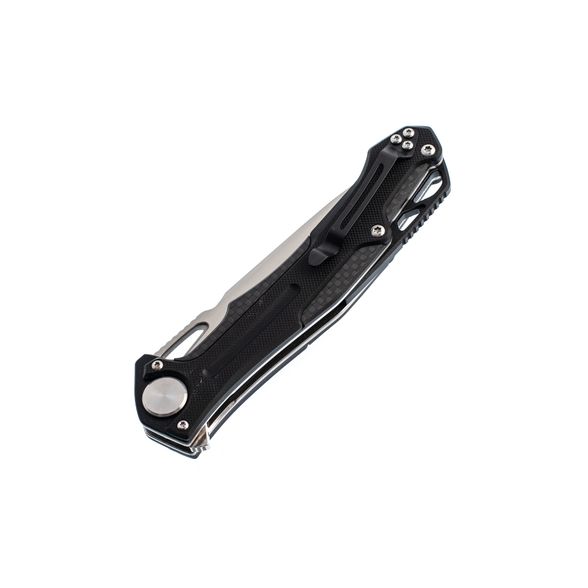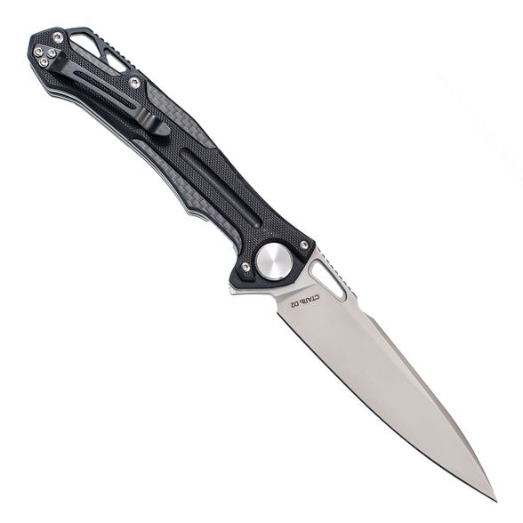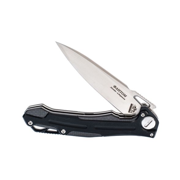 Фантом от бренда Нокс - это модель из линейки "Т", разработанной Александром Бирюковым. Клинок выполнен из стали D2 которая обладает долгим удержанием заточки. Геометрия клинка это так называемый "тройной клин", обеспечивающую хорошие режущие свойства при высокой проникающей способности. Рукоять состоит из двухслойных накладок стеклотекстолита G10 и карбона, что придает ножу долговечность и устойчивость к повреждениям. Модель обладает превосходной механикой за счет подшипников в осевом узле. Для удобного ношения предусмотрена клипса умеренно глубокой посадки.