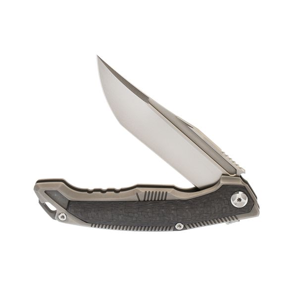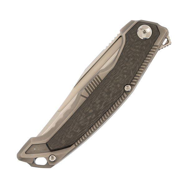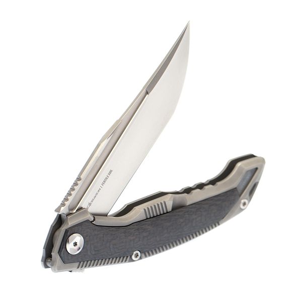 Складной нож Fat Dragon, сталь M390, рукоять титан/карбон сочетает в себе широкий функционал, тактические характеристики и современный дизайн. Клинок ножа выполнен из высокотвердой нержавеющей стали, которая используется для создания резцов в тяжелой металлургии. В процессе плавки сталь проходит через электромагнитный фильтр, что значительно повышает ее однородность и жесткость кристаллической решетки. В состав сплава входит элемент ванадий, который отвечает за повышенную твердость, благодаря чему режущая кромка остается острой в течение длительного времени. Хром, который также входит в состав отвечает за высокое сопротивление к ржавлению. Нож оснащен эргономичной рукояткой, которая позволяет выполнять деликатную и силовую работу.