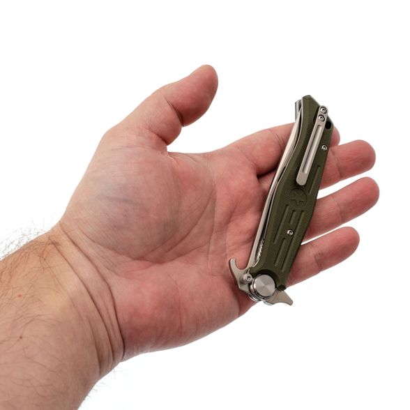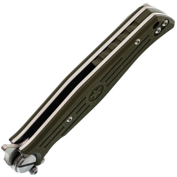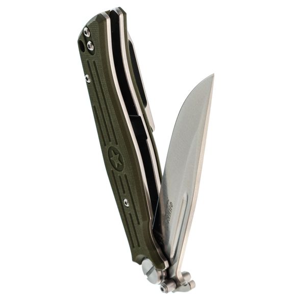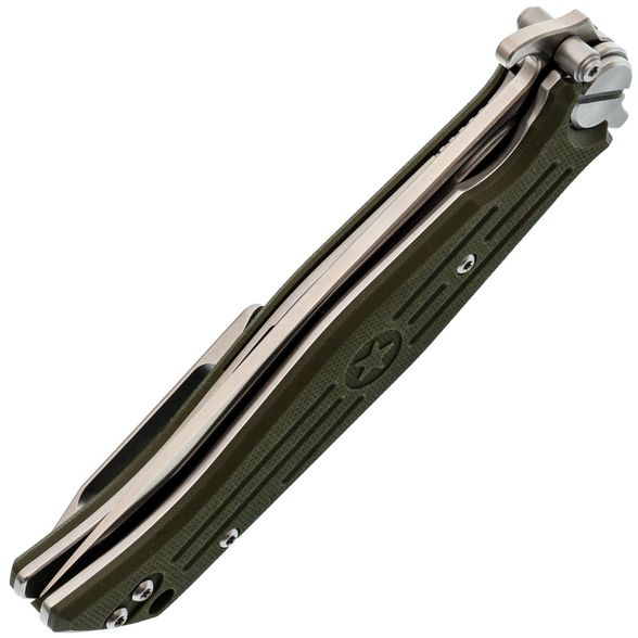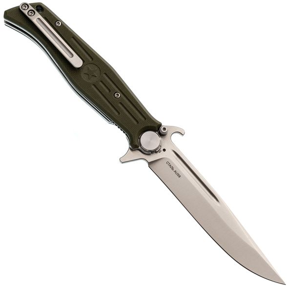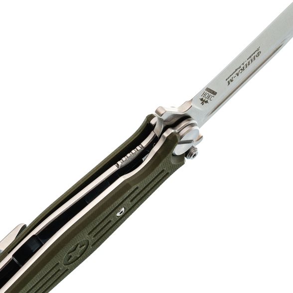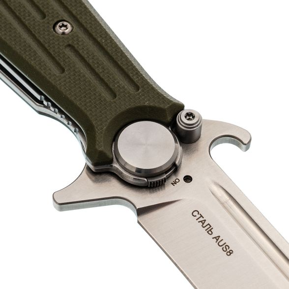 Клинок изготовлен из стали AUS-8, которая обладает отличными характеристиками. Эта сталь неприхотлива в уходе, имеет высокую ударную вязкость и устойчивость к коррозии, что позволяет легко затачивать нож в полевых условиях. Высокие прямые спуски обеспечивают эффективную режущую способность, а также достаточную прочность для выполнения тяжёлых задач. Упоры стали более компактными, что улучшает комфорт при работе. Нож можно быстро открыть об карман, что является удобным и практичным решением. Осевой узел оснащён шайбами, предотвращающими попадание грязи и пыли, что положительно сказывается на надёжности механизма.