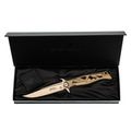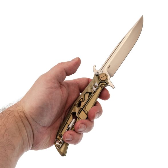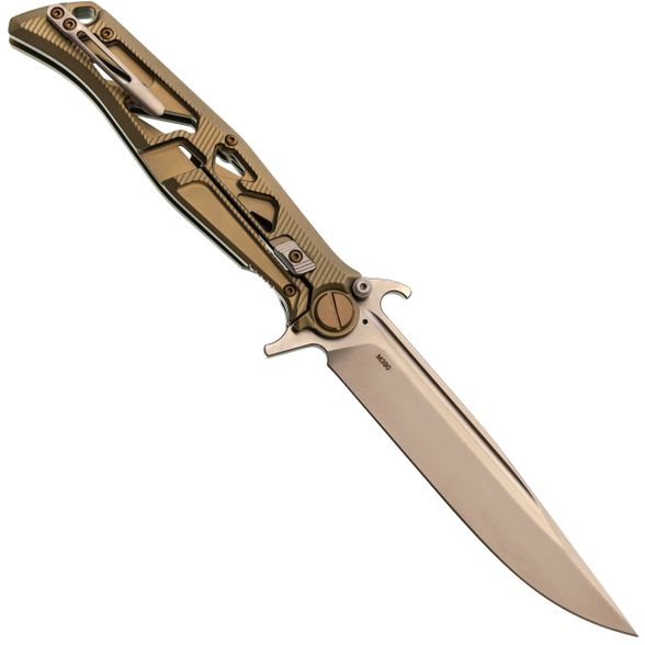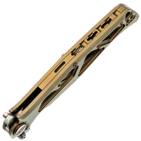 - Титан для рукояти: Рукоять сделана из авиационного титана. Он легче стали, не боится коррозии и приятно греется в руке. Титан здесь не просто для красоты - он даёт жёсткость конструкции, но при этом нож не оттягивает карман. Со временем на рукояти появляется естественный благородный патин, делающий дизайн персонализированным.