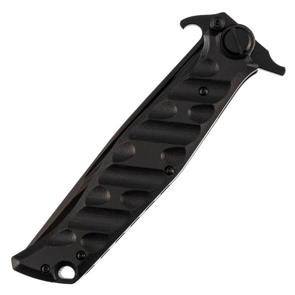 Рукоять изготовлена из прочного материала G10, который обеспечивает надежное противоскользящее покрытие даже в влажных или сложных условиях. Это означает, что вы всегда будете иметь уверенный и безопасный хват, позволяющий контролировать нож при любом использовании. Материал рукояти также устойчив к воздействию химических веществ, что делает нож еще более долговечным.