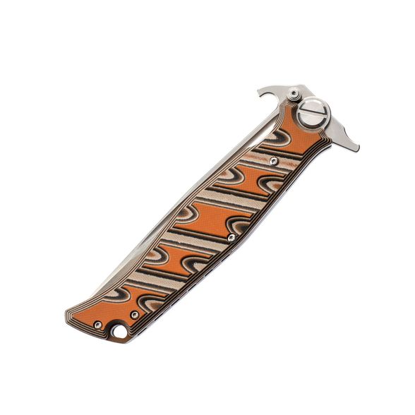 СКЛАДНОЙ НОЖ ФИНКА С складная, СТАЛЬ D2, РУКОЯТЬ ОРАНЖЕВАЯ G10 это наш ответ Чемберлену или даже скорее компании Cold Steel. Не "лузоном" единым жив человек - решили в компании НОКС и создали стильный и практичный нож на основе классической финки НКВД. И если раньше варианты создания такого ножа вызывали скорее недоумение, чем интерес, то сейчас ситуация скорее обратная. Дизайнерам компании удалось создать интересный во всех отношениях нож. Во-первых, здесь используется качественная инструментальная сталь. Во-вторых, нож оснащен полноценными упорами, которые повышают безопасность в процессе работы. В-третьих, эргономичная рукоятка выполнена из тактического стеклотекстолита, что обеспечит ножу длительный срок эксплуатации.