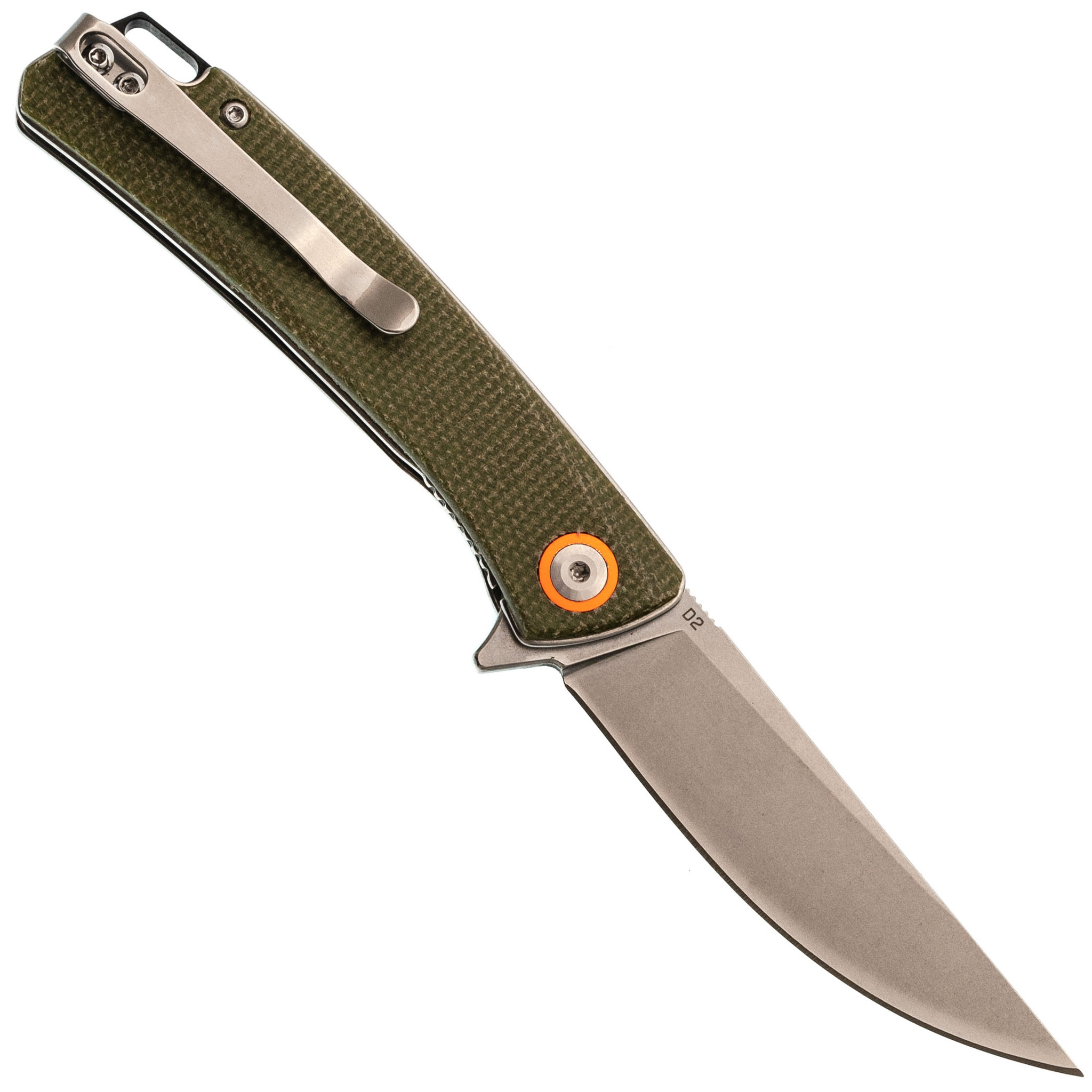 Клинок ножа изготовлен из высококачественной инструментальной стали D2, обеспечивающей длительное сохранение заточки и агрессивный рез. Высокие прямые спуски усиливают режущие свойства ножа, а универсальная форма Drop-Point делает его удобным для выполнения самых разных задач.