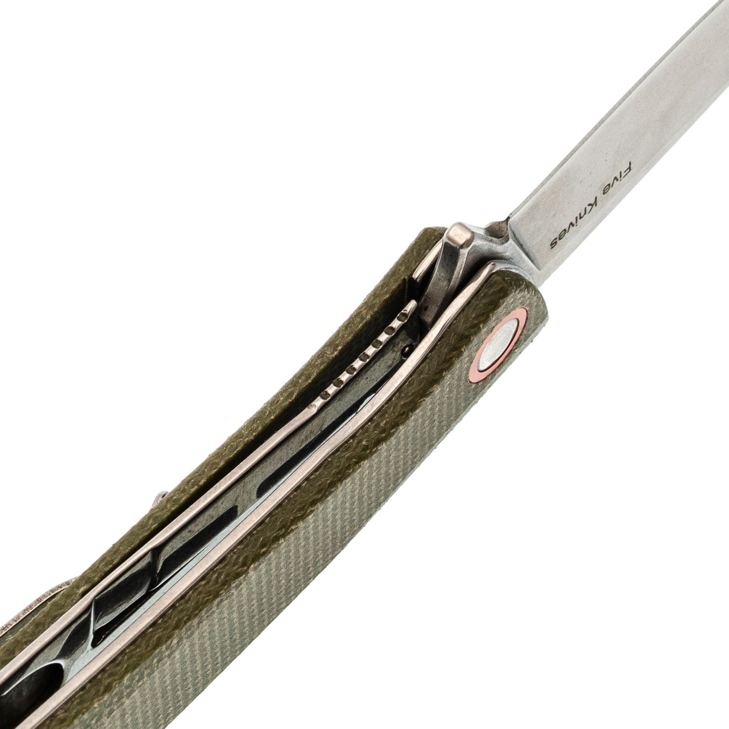 Оснащение Five Knives 01 включает в себя клипсу глубокой посадки, позволяющую носить нож на кармане или ремне, а также широкое темлячное отверстие.