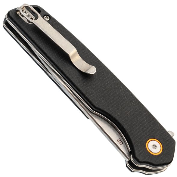 Оснащение ножа включает в себя клипсу глубокой посадки, позволяющую незаметно носить нож на кармане или ремне, и темлячное отверстие.