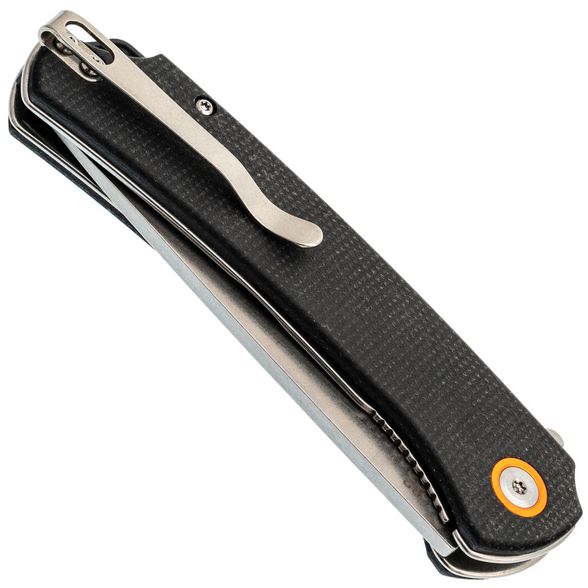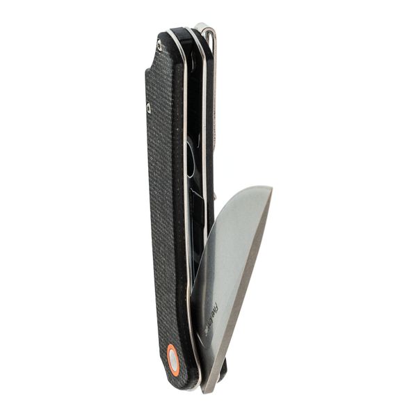 Оснащение ножа включает в себя клипсу глубокой посадки, позволяющую носить нож незаметно, и большое темлячное отверстие, подходящее даже для толстого паракорда диаметром 4 мм.