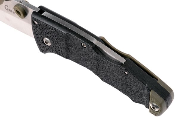 Складной нож фирмы Cold Steel (Колд Стил) изготовлен из японской нержавеющей стали AUS-8. Материал отличается высокой механической выносливостью и длительной сохранностью заточки. Рукоять выполнена из износостойкого термопластика, имеет довольно сложную форму. Имеются специальные выемки под пальцы.