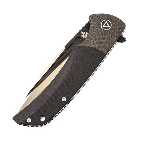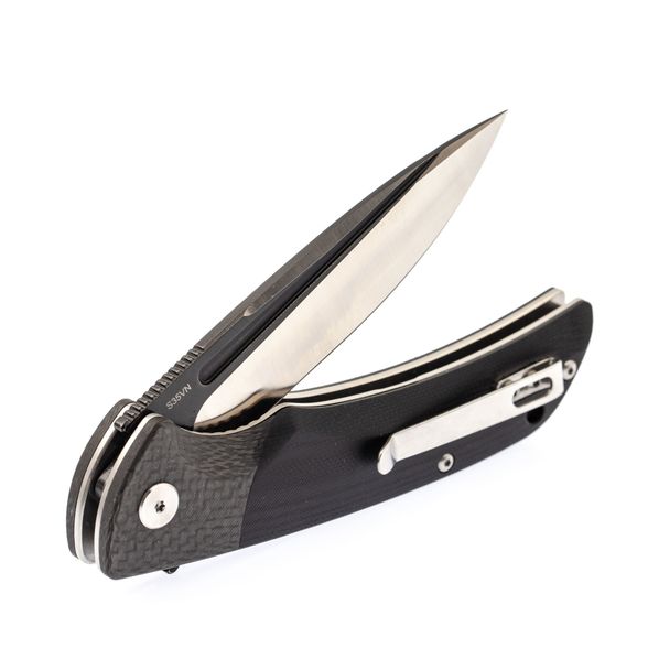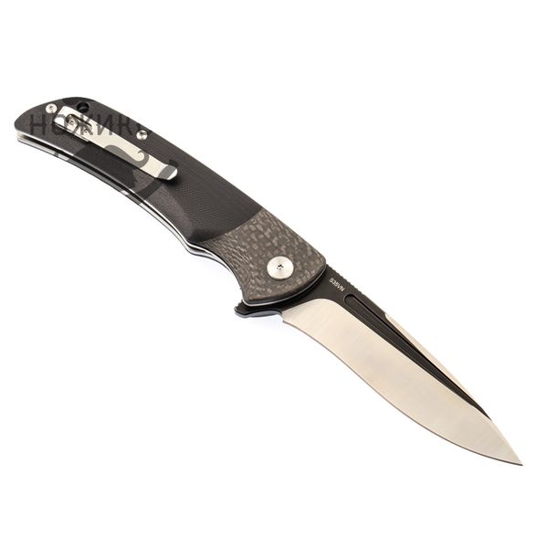 СКЛАДНОЙ НОЖ HARPYIE, S35VN интересный и вполне бюджетный вариант, который позволит поближе познакомиться с передовым ножевым дизайном и инновационными технологиями. Благодаря правильно подобранным шайбам на осевом винте, нож просто выстреливает при нажатии на флиппер. Удобная рукоять сочетает в себе накладки из G10, которые перемежаются вставками из карбона. Клинок имеет плавный подъем режущей кромки и ниспадающий обух, что обеспечивает создание мощного и острого кончика. На обухе также есть пропилы, которые обеспечивают упор для большого пальца. Среди интересных фишек стоит выделить титановую клипсу, которая может быть установлена с одной стороны.