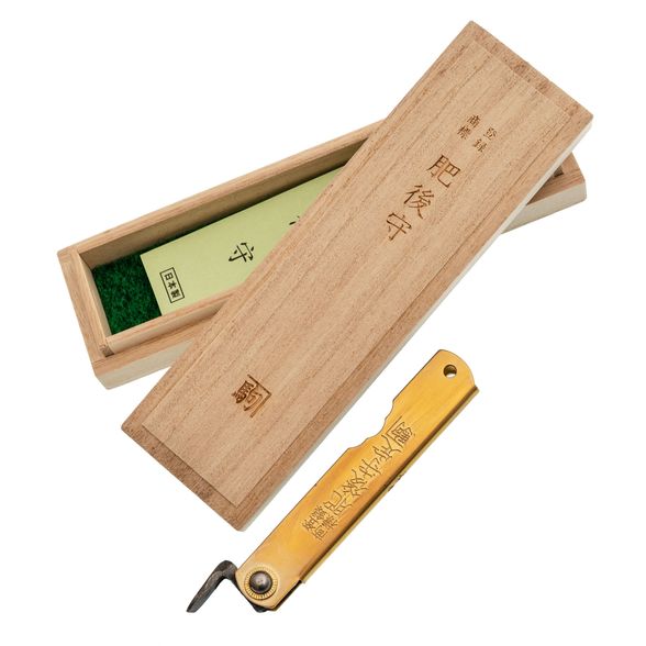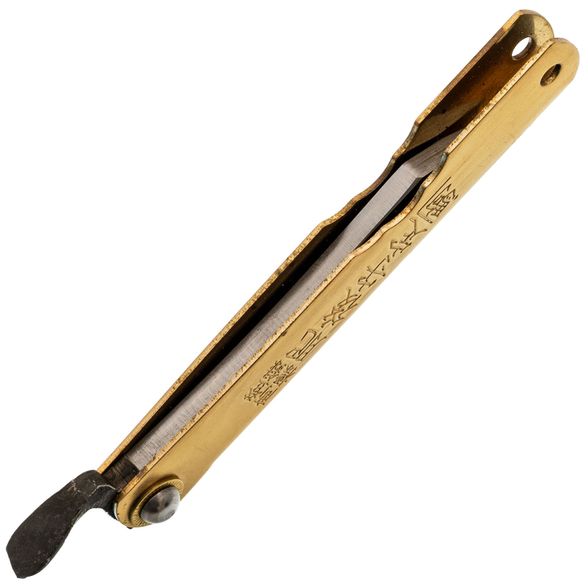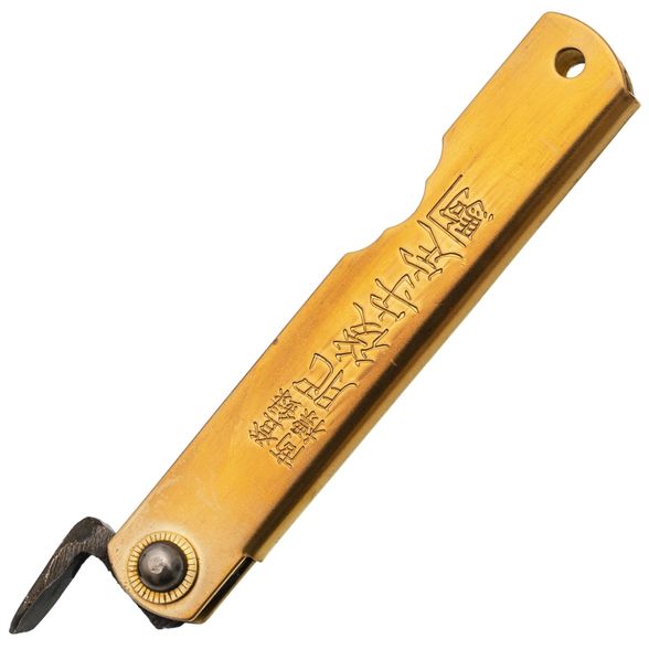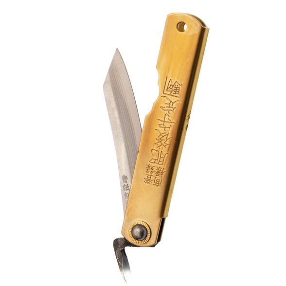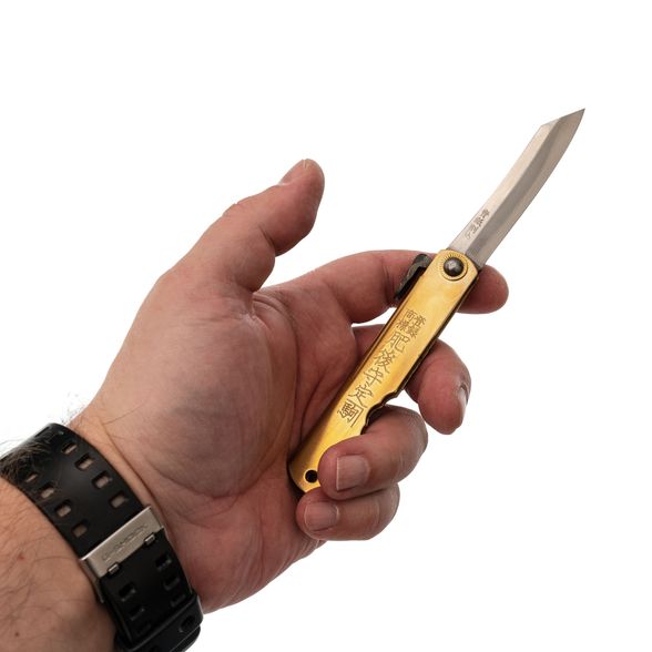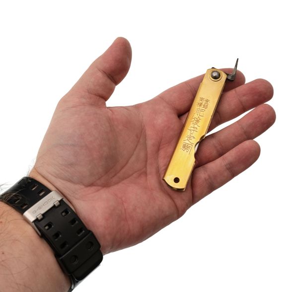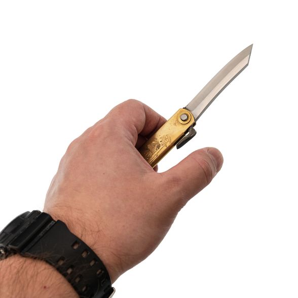 Нож складной Higonokami Nagao Kanekoma, 80мм, сталь Aogami Damascus 3 слоя, рукоять латунь черная