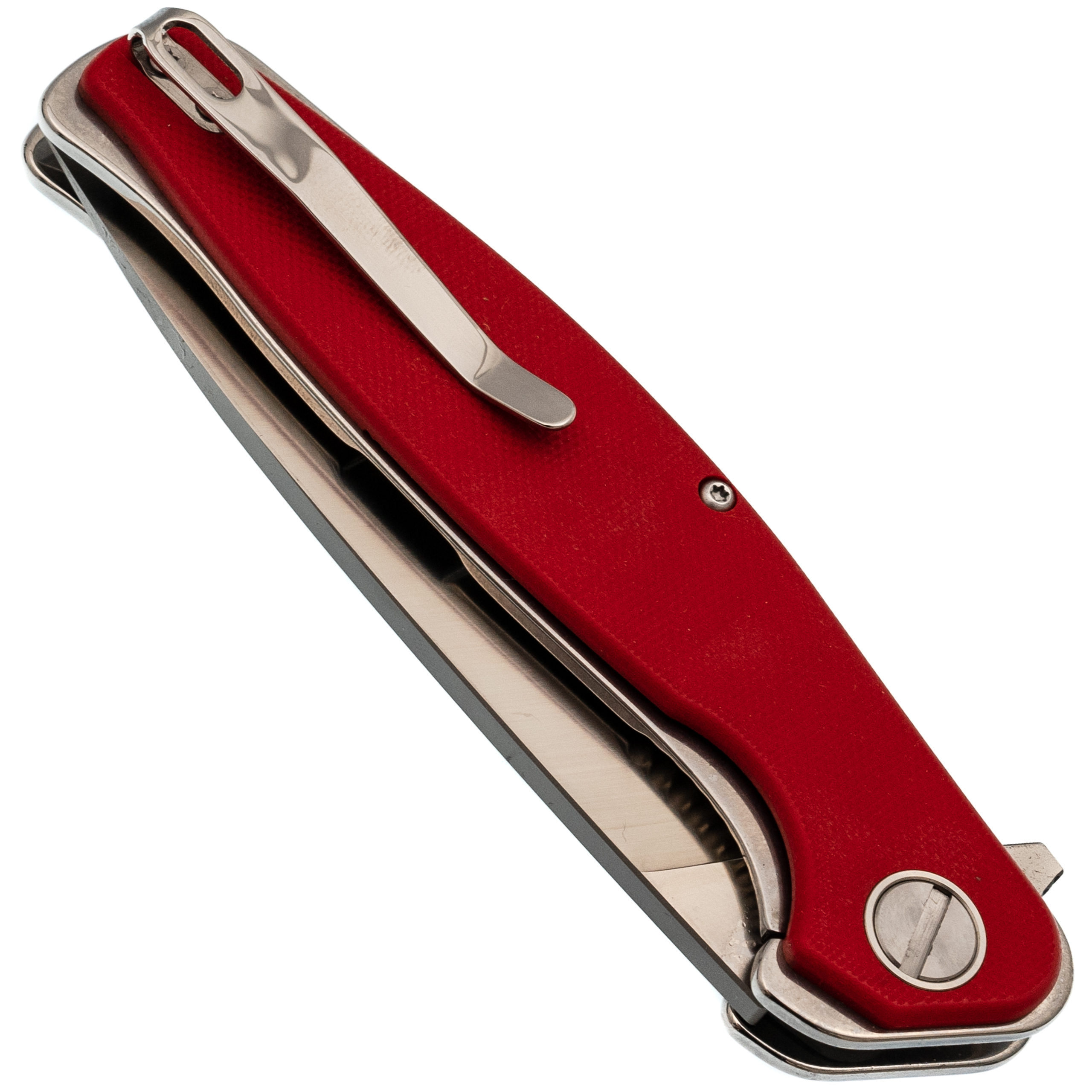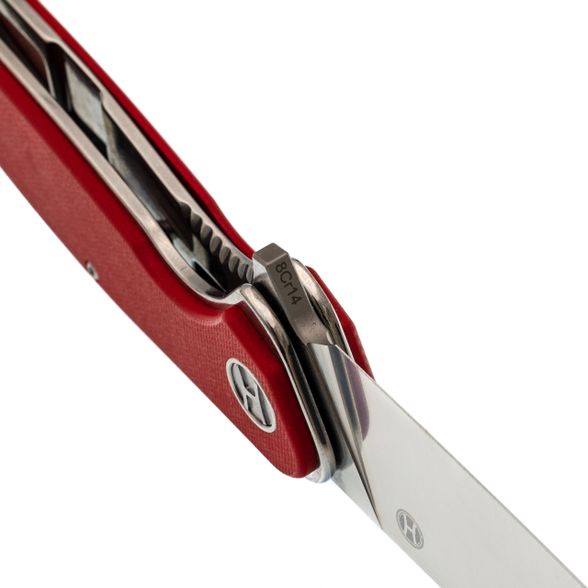 - G10 на рукояти: слоистый стеклотекстолит, который не меняет геометрию от влаги и температуры. В отличие от резины, он не липнет в жару и не дубеет на морозе. Поверхность даёт уверенный хват, даже если руки в масле или перчатках. И главное - G10 не боится ударов: при падении на камни рукоять не треснет и не расколется.