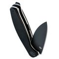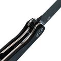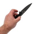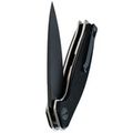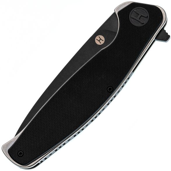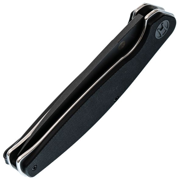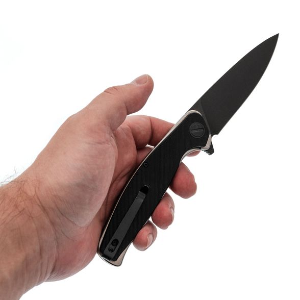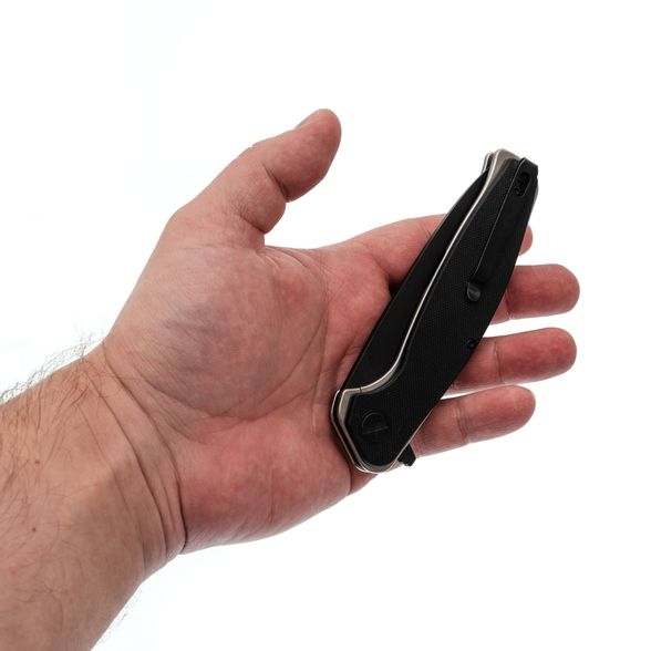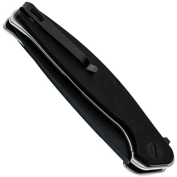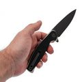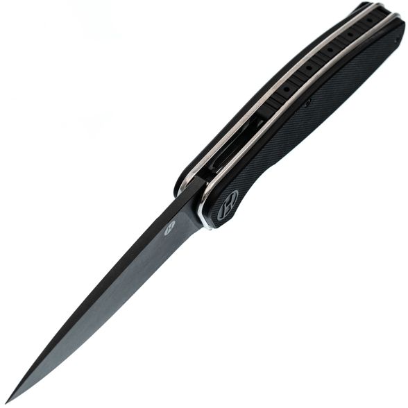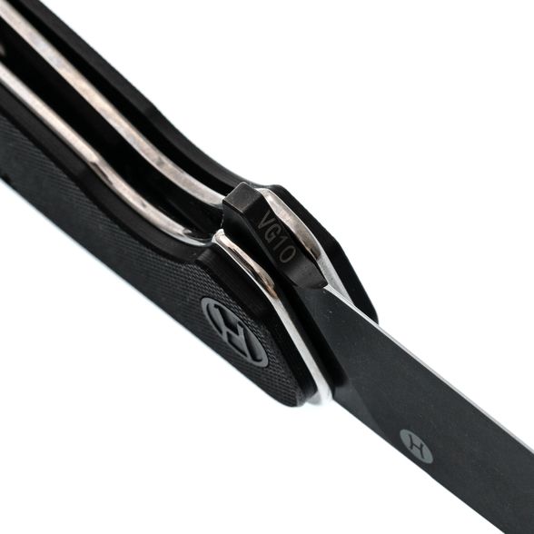 Клинок выполнен из стали VG-10 — качественного японского сплава среднего ценового сегмента. Эта сталь обладает отличным балансом между удержанием остроты и устойчивостью к коррозии. Чёрное защитное покрытие Black Stonewash на клинке дополнительно оберегает его от внешних воздействий и придаёт эстетическую привлекательность. Универсальная форма Spear-Point с прямыми спусками от обуха толщиной 4 мм обеспечивает ножу превосходные режущие характеристики и достаточную прочность. Благодаря флипперу и керамическим подшипникам в осевом узле, клинок открывается легко и молниеносно.