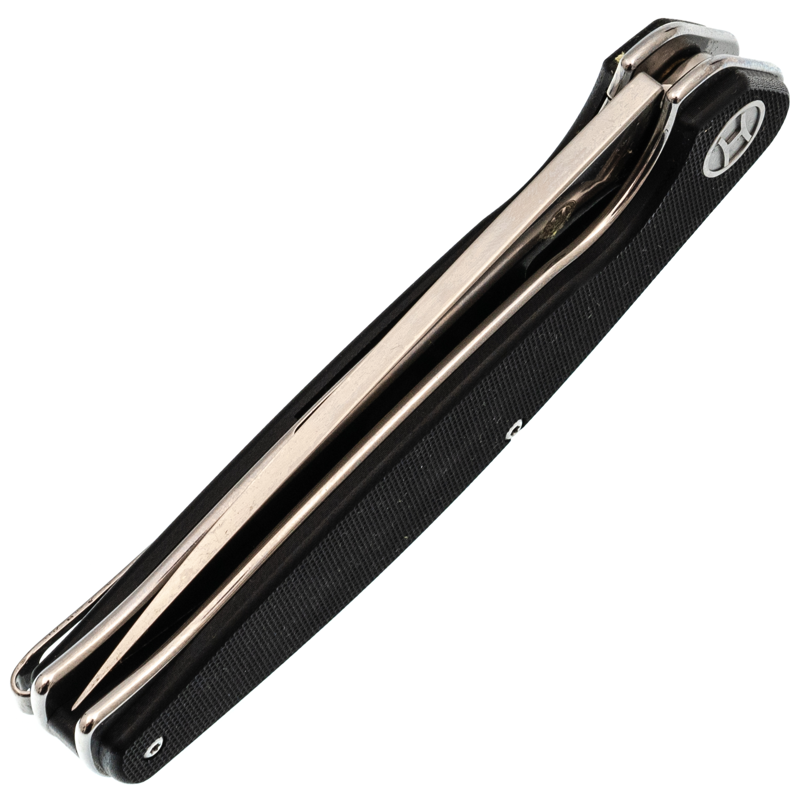 - Рукоять G10: стеклотекстолит, который не меняет геометрию от влаги, не выцветает на солнце и не дубеет на морозе. Текстура даёт цепкий хват даже в перчатках или при влажных руках. По прочности этот материал сопоставим с алюминием, но весит меньше и не создаёт ощущения холода зимой.