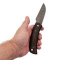 Нож удобно ложится в руку различными видами хватов. Для удобного ношения в комплекте есть поясной чехол. Нож имеет небольшой вес и при желании его можно носить в кармане, не используя чехол.