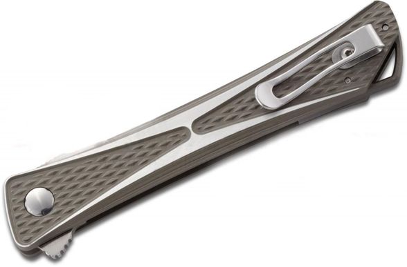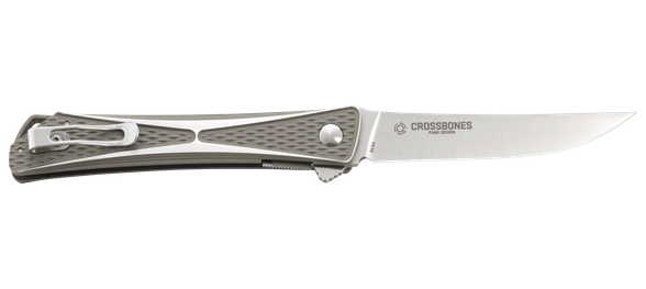 Складной нож CRKT Crossbones был разработан гавайским найфмейкером с мировым именем Джеффом Парком. Своим названием этот стильный легкий нож обязан дизайну рукояти, напоминающему скрещенные кости. Характерные особенности модели - строгость линий, использование самых современных материалов и хорошая эргономика. Клинок из японской стали AUS-8 хорошо противостоит коррозии и долго удерживает заточку. Открытие ножа осуществляется при помощи флиппера. Для фиксации лезвия предусмотрен механизм Liner-lock. Нож в японском стиле укомплектован рукоятью из прочного авиационного алюминия 6061-T6. Рифленая поверхность имеет анодированное покрытие, стилизованное под бронзу, что придает ей особый шарм. На рукояти размещена компактная карманная клипса.