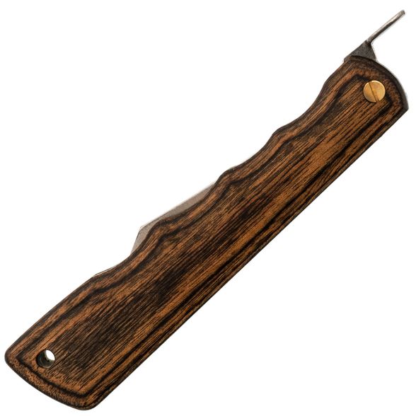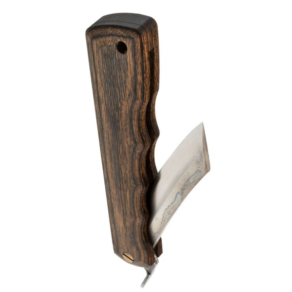 Рукоять выполнена из стабилизированной древесины ореха, что не только придаёт изделию аутентичный вид, но и делает её устойчивой к воздействию влаги. Кроме того, такая рукоять удобнее лежит в руке, что повышает комфорт при использовании.