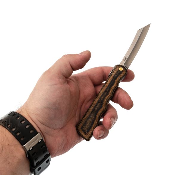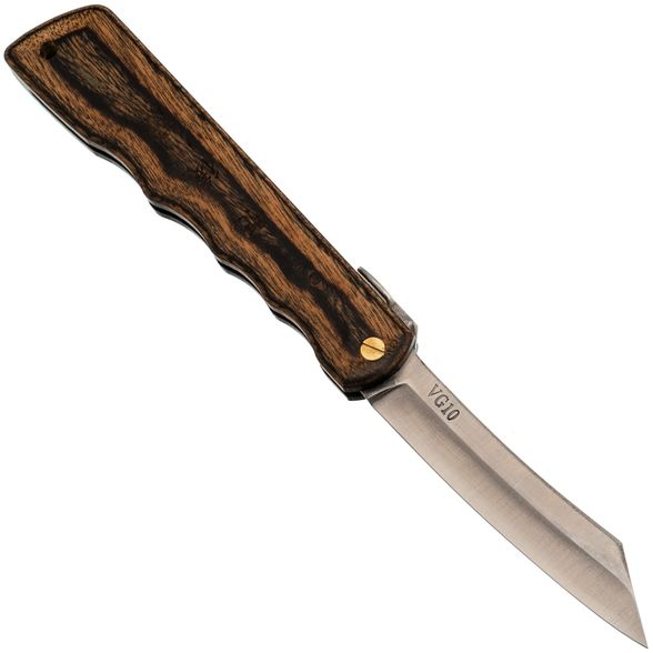 Клинок изготовлен из ламината, где сердечник выполнен из высококачественной стали VG-10, а обкладки — из нержавеющей стали 420J2. Такое сочетание материалов позволяет закалить сердечник до более высокой твёрдости, что улучшает удержание остроты лезвия и повышает его коррозионную стойкость. Традиционная форма клинка с острым кончиком отлично подходит для точных надрезов, а универсальный дизайн делает его пригодным для выполнения широкого спектра задач.