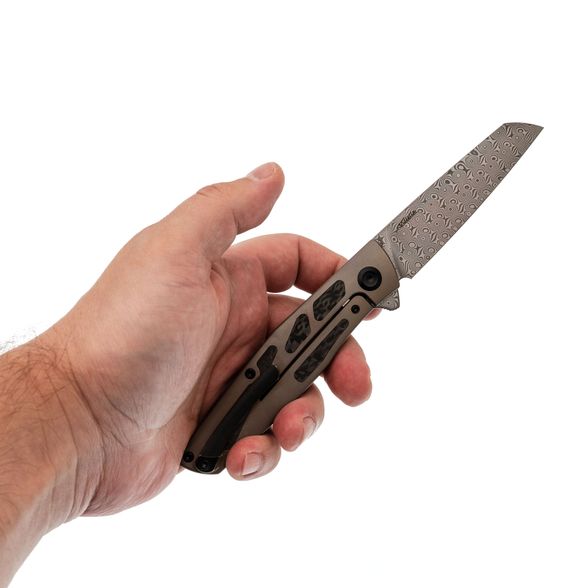 Рукоять из титана с контрастными карбоновыми вставками сочетает в себе прочность, легкость и современный внешний вид. Эргономичная форма обеспечивает удобный и надежный хват, а наличие флиппера облегчает открывание. Карманная клипса позволяет носить изделие максимально комфортно и незаметно. Cru от Kansept Knives - это продуманный инструмент с премиальными материалами и фирменным стилем бренда.