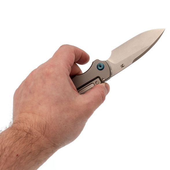 Рукоять слегка изогнута, с подпальцевой выемкой - хват получается уверенным и цепким. Bali-Lock фиксирует клинок в открытом и закрытом положении, а при отпускании даёт свободный ход для инерционного раскрытия. Укороченная клипса крепко держит нож на кармане и помогает быстро вытащить его одной рукой.