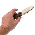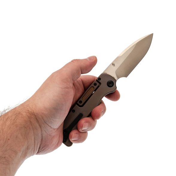 Рукоять слегка изогнута, с подпальцевой выемкой - нож уверенно сидит в руке и хорошо контролируется. Bali-Lock позволяет зафиксировать клинок в двух положениях и даёт инерционное открытие, когда хочется больше динамики. Укороченная клипса держит нож надёжно и помогает быстро достать его из кармана.