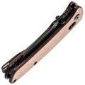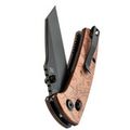 Рабочая часть выполнена из стали CPM-S35VN с толщиной обуха 3.2 мм, что обеспечивает конструктивную жёсткость и устойчивость к нагрузкам. Обработка BlackWash снижает отражение света, защищает поверхность от мелких повреждений и подчёркивает строгий внешний вид. Геометрия клинка способствует точному и контролируемому резу, а сама сталь демонстрирует стабильную производительность при работе с различными материалами.