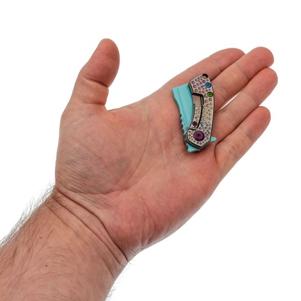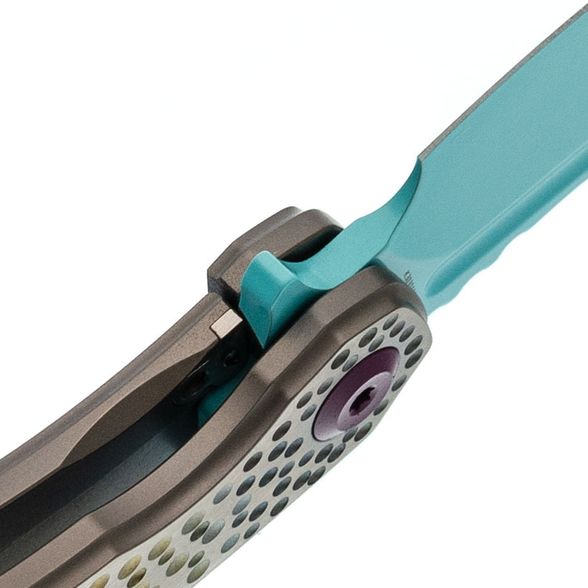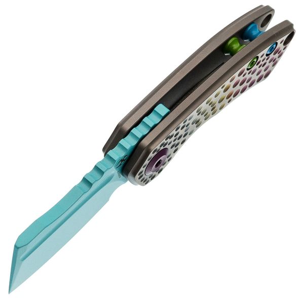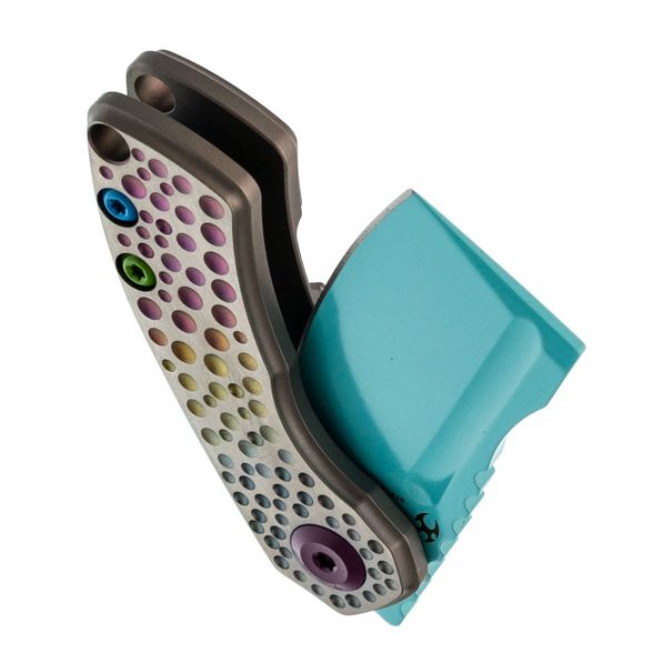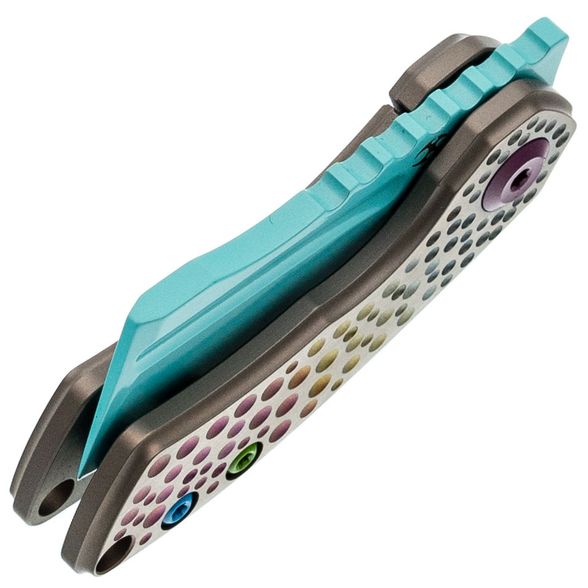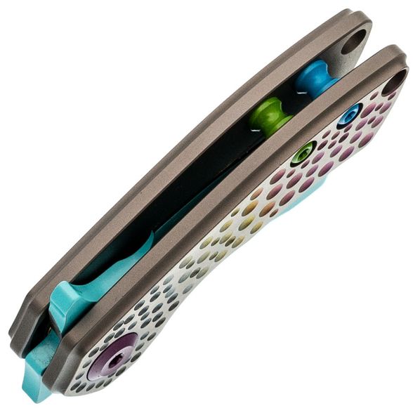 Клинок выполнен из высококачественной стали S35VN, известной своей твёрдостью, стойкостью к износу и стабильной режущей кромкой. Рукоять изготовлена из титана с анодированными выемками, что не только улучшает сцепление, но и придаёт ножу характерный футуристичный вид. Материалы подобраны с прицелом на долговечность и комфорт в использовании.