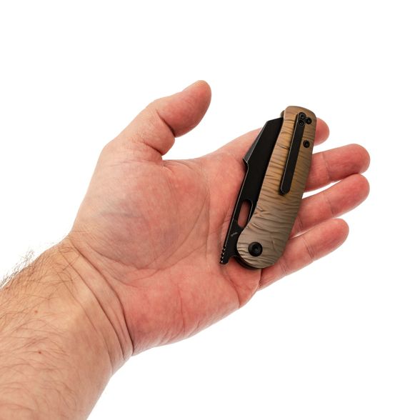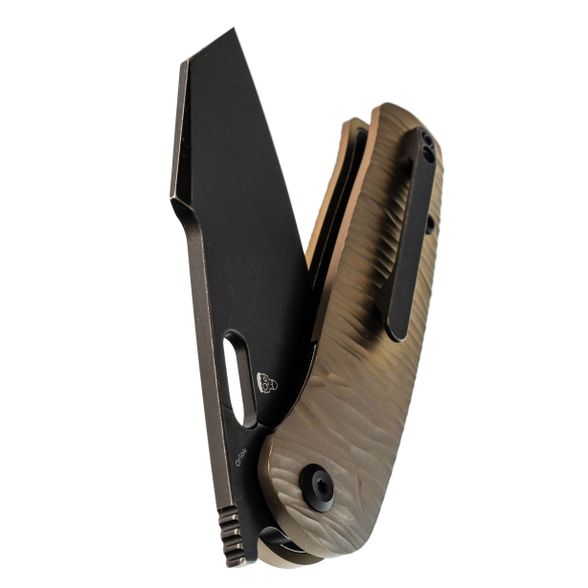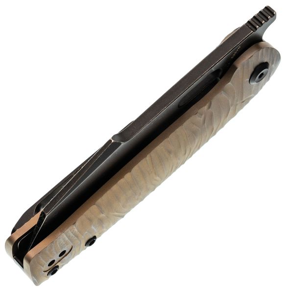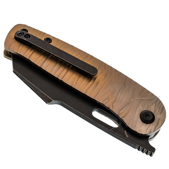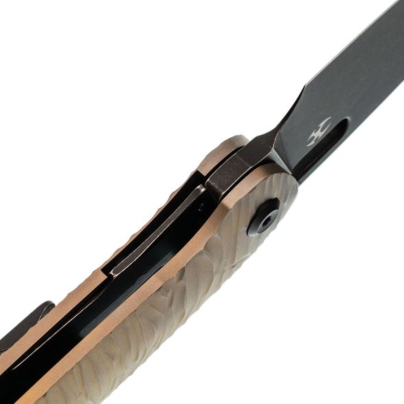 Рукоять из титана с анодированной бронзовой отделкой и микротекстурой Micro Rock обеспечивает надёжный контроль и визуальную индивидуальность. Текстурированная поверхность способствует уверенной фиксации в руке, а форма адаптирована под естественное положение кисти, что делает использование комфортным даже при длительной работе. Материал устойчив к загрязнениям, легко очищается и сохраняет стабильные свойства в различных условиях. Сбалансированная геометрия и точная посадка всех элементов обеспечивают уверенное управление инструментом в повседневных задачах.