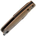 Рабочая часть выполнена из стали CPM-S35VN с толщиной обуха 4 мм, что придаёт конструкции дополнительную жёсткость и устойчивость к нагрузкам. Обработка BlackWash снижает отражение света, защищает поверхность от мелких повреждений и подчёркивает строгий характер модели. Сталь демонстрирует стабильную производительность при работе с различными материалами, сохраняя режущие свойства даже при интенсивной эксплуатации.