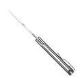 Клинок из стали CPM S45VN выполнен в профиле Drop Point, что делает его универсальным для различных задач. Толщина обуха 3 мм обеспечивает баланс между прочностью и точностью работы. Поверхность обработана методом Satin finish, придающим изделию аккуратный и строгий вид, а также снижающим заметность мелких следов эксплуатации.