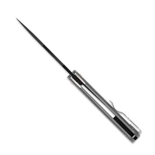 Рукоять сочетает титан и микарту, образуя прочную и эргономичную конструкцию. Серый цвет придаёт строгий и современный вид, а текстурированная поверхность обеспечивает уверенный хват. Благодаря продуманной форме изделие удобно лежит в руке, а замок Liner-lock гарантирует безопасное использование и стабильность при работе.