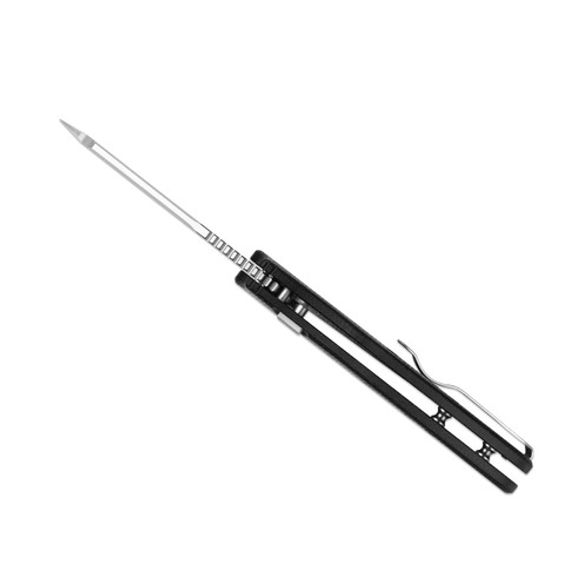 Чёрная рукоять из микарты отличается удобной формой и цепким хватом. Она комфортно лежит в руке, обеспечивая уверенный контроль даже при длительном использовании. Текстурированная поверхность и продуманная геометрия способствуют стабильности движений, а лёгкость конструкции делает модель удобной для постоянного ношения.