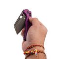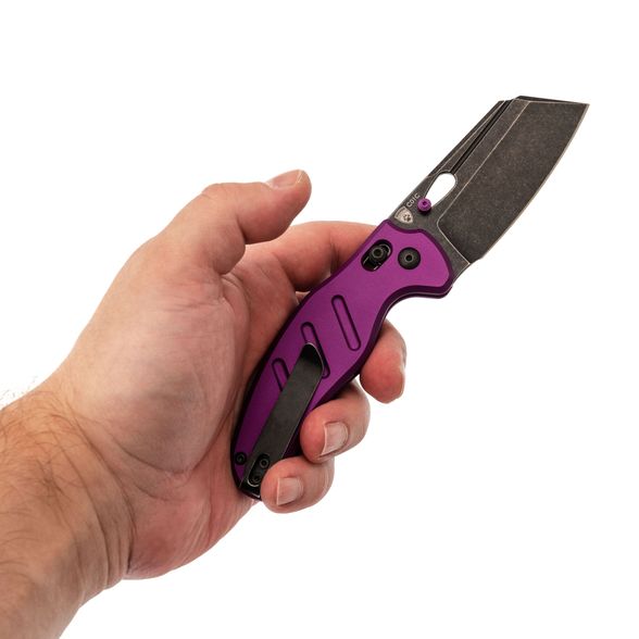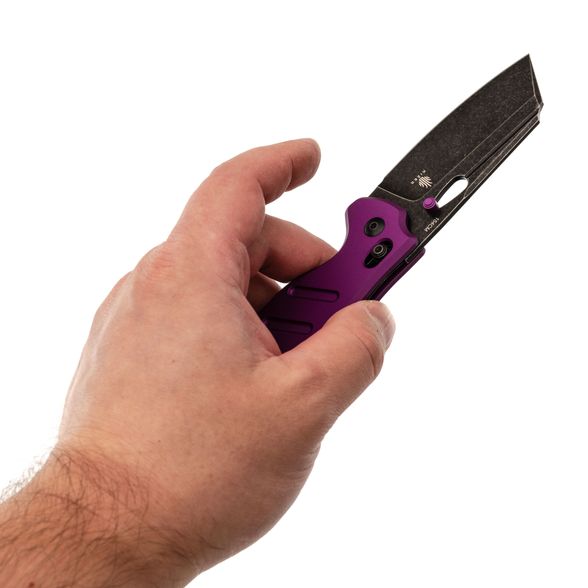 Kizer C01C — это складной нож чуть меньше среднего размера, представляющий современную интерпретацию классических ножей с профилем тяпки. Он сочетает в себе необычный и запоминающийся дизайн с практичностью и надёжностью, что делает его отличным выбором как для повседневного ношения, так и для коллекции. Как и все ножи от Kizer, модель отличается высоким качеством сборки, отличной подгонкой деталей и аккуратной обработкой. Особенно выделяется фиолетовая расцветка рукояти, которая делает нож ярким акцентом на фоне привычных чёрных моделей.