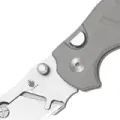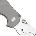 Здесь работает не классический клинок, а держатель под сменное лезвие: он открывается за шпеньки, удобно и правой, и левой рукой. Конструкция позволяет задействовать почти всю длину лезвия, а небольшая часть у рукояти закрыта - получается аккуратный безопасный чойл. Крепление лезвия выполнено на винтиках.