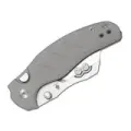 Рукоять изогнута и эргономична, с фрезеровками под пальцы. Замок - Liner-Lock, но управляется кнопкой, как у Button-Lock: привычно, быстро и спокойно по ощущениям. Для кармана предусмотрена переставляемая клипса, а в накладках спрятаны пинцет и зубочистка - мелочь, которая неожиданно выручает.