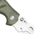 Изогнутая рукоять с фрезеровками помогает держать контроль, особенно в долгой работе. Замок - Liner-Lock, но управляется кнопкой, как у Button-Lock: удобно, безопасно по ощущениям и очень привычно. Клипса переставляемая, а внутри накладок спрятаны пинцет и зубочистка - приятный бонус к повседневной полезности.