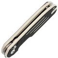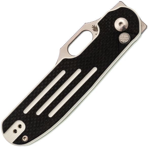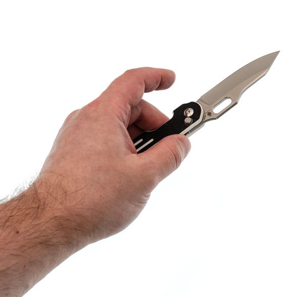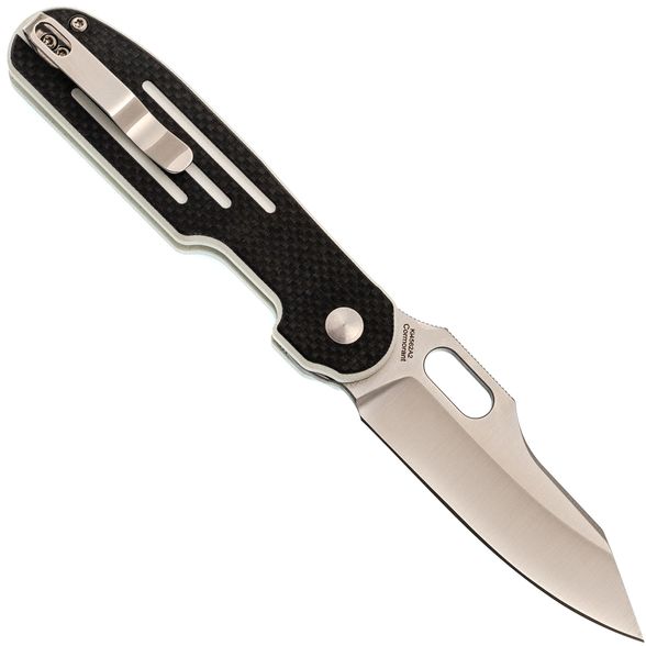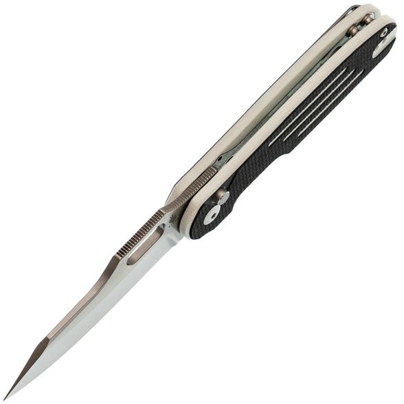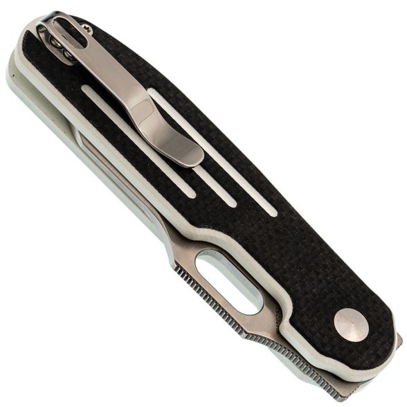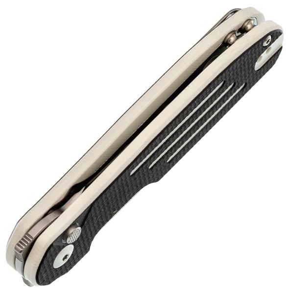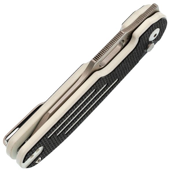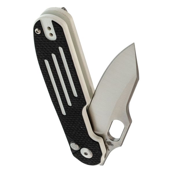 Рукоять из ламината G10 с черно-белым контрастным дизайном обеспечивает надежный и комфортный хват. Белый слой G10 дополнен тонким черным, что придает рукояти рельефность и улучшает тактильную обратную связь. Замок Button-Lock позволяет удобно и безопасно оперировать замком одной рукой и обеспечивает надёжную фиксацию клинка. Инерционное открытие и закрытие делают процесс использования еще более удобным и быстрым.