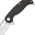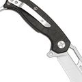 Клинок Hawkbill - это изогнутый профиль, который хорошо контролирует рез и концентрирует усилие в точке контакта. На лезвии есть аккуратное отверстие для открывания, что даёт удобную альтернативу флипперу и позволяет быстро привести нож в рабочее положение даже одной рукой. Сатиновая отделка подчёркивает форму клинка и делает его визуально аккуратным.