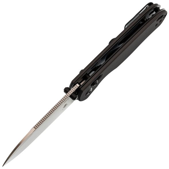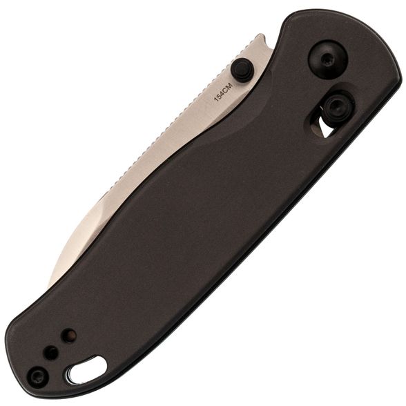 Клинок длиной 76 мм выполнен с прямыми спусками, а его обух толщиной 2,8 мм обеспечивает надежное и эффективное резание. В качестве стали клинка используется высококачественная сталь 154CM, которая известна своей долговечностью, отличным удержанием заточки и высоким сопротивлением к коррозии. Это делает нож идеальным для повседневного использования, так как сталь легко правится и сохраняет свою остроту на протяжении длительного времени.
