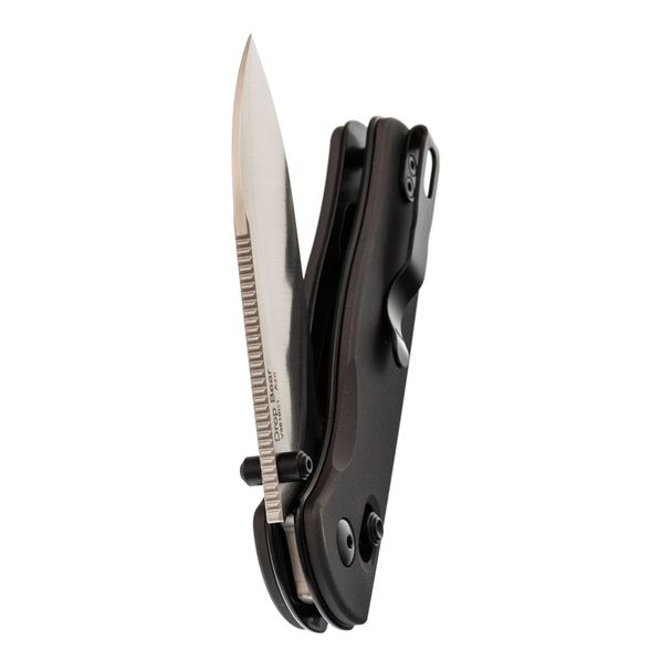 Замок ножа Clutch Lock является интерпретацией популярного замка Axis-Lock и обладает уникальной возможностью регулировки напряжения пружины, что позволяет настроить работу замка под индивидуальные предпочтения. Оперирование замком одинаково удобно как левой, так и правой рукой, что делает нож универсальным для большинства пользователей. Переставляемая клипса также позволяет носить нож в любом положении, что делает его удобным для обоих рук.
